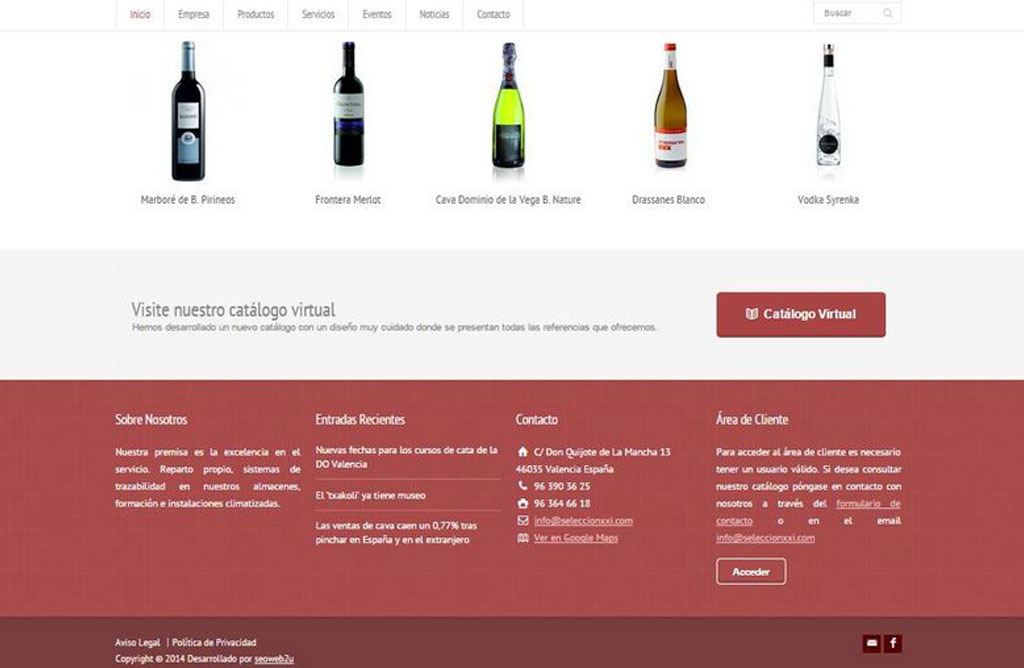 Selección XXI es una comercializadora de las mejores marcas de vino de las principales bodegas nacionales e internacionales, además de varias bebidas espirituosas, aceites y vinagres de calidad..